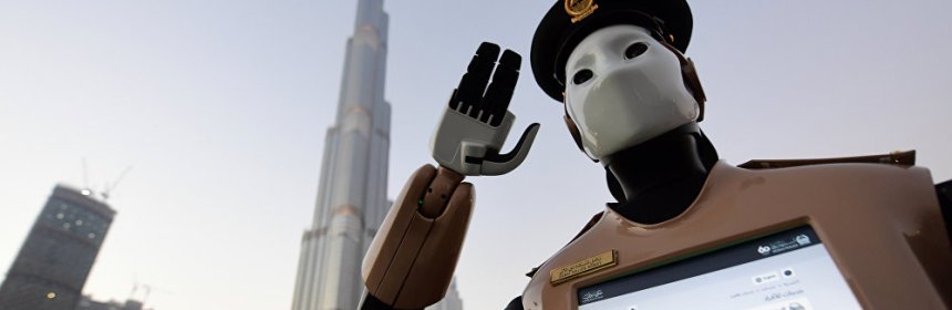 In Dubai ist seit Mai der erste Robocop weltweit unterwegs der über ein Mikro mit Polizei Call Centern verbunden ist und über ein Touch Screen auf seiner Brust verfügt. Man kann den Roboter nach Wegbeschreibungen fragen, Verbrechen melden und sogar Strafen bezahlen.