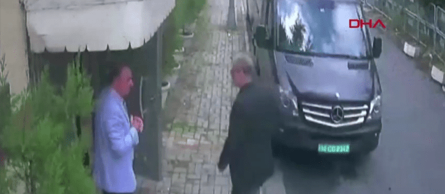 Das Material soll aufzeigen wie Kashoggi nachdem er am 2.Oktober das saudische Konsulat betrat von dem hiesigen Sicherheitsteam in Gewahrsam genommen worden sei, das ihn daraufhin getötet und seinen Leichnam zergliedert habe.