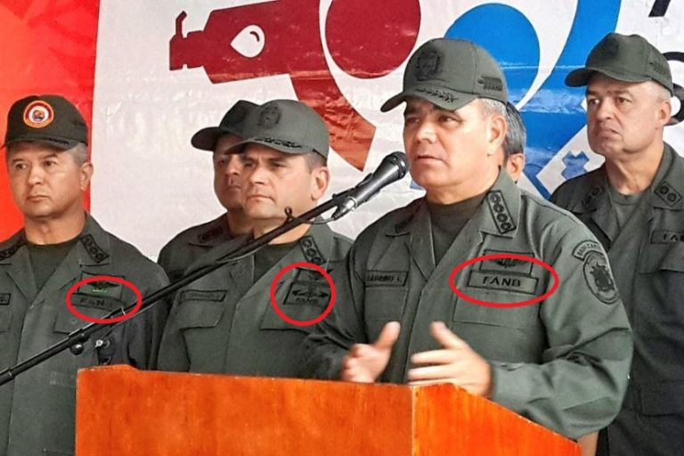 Die Uniformen der mutmaßlichen Schauspieler waren jeweils mit dem längst verworfenem Abzeichen verziert das die Aufschrift FAN – Fuerza Armada Nacionales trägt, wohingegen das aktuelle Abzeichen der venezolanischen Soldatenuniformen die Initialen