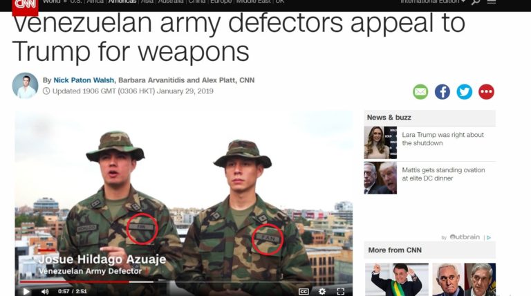 Die ultimative Neuzeit Propagandaschleuder, der Nachrichtensender CNN, präsentierte zwei angebliche desertierte venezuelanische Soldaten, die den US-Präsidenten darum baten sie zu bewaffnen um die „Freiheit“ in Venezuela zu verteidigen.