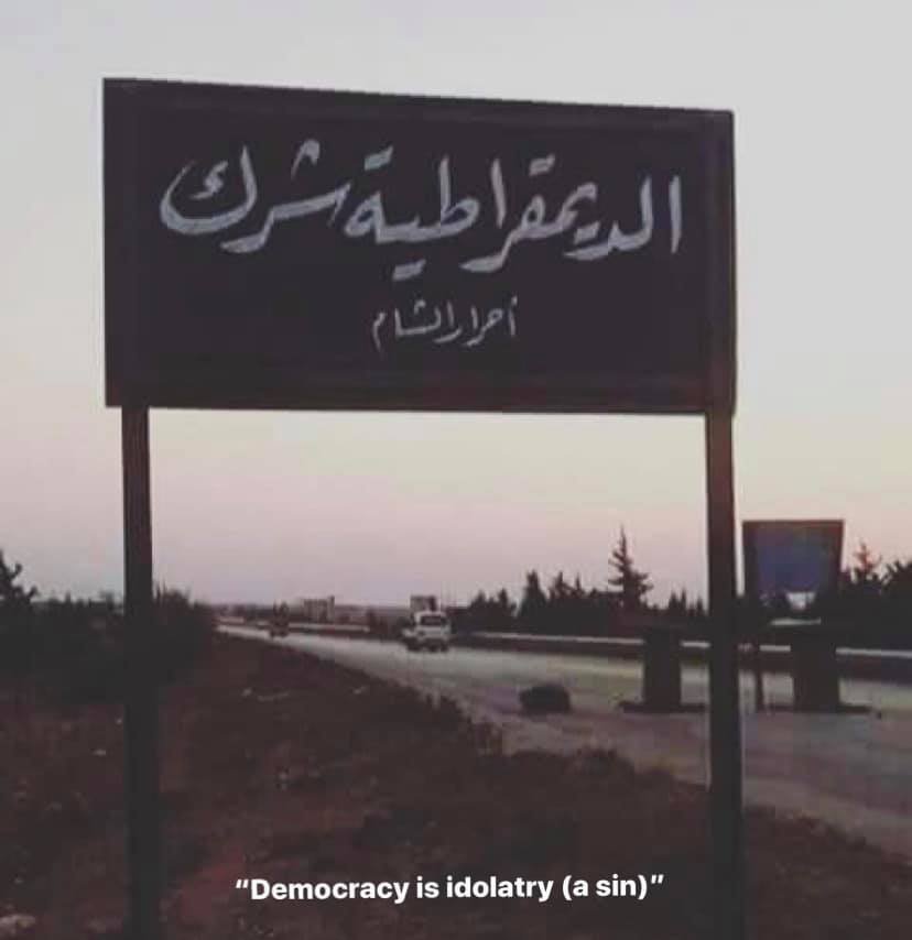 Idlib- „Demokratie ist eine Sünde“. Straßenschilder und Wegweiser im Kalifat, zeigen wo es lang geht