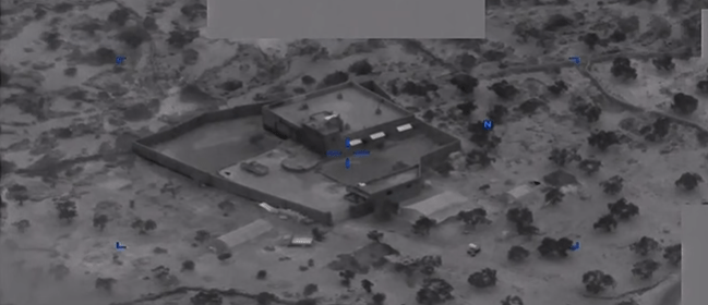 Eine finale von McKenzie angeführte im Weitwinkel eingefangene Luftaufnahme, will den dritten Akt der Baghdadi-Mission vorführen. Sprich die Ebnung des Areals, auf dem der IS-Boss einst in seinem Compound untergetaucht sei. Zu sehen sind wie mehrere vermutlich bunkerbrechende Raketen zum Einsatz kommen, und in einem nicht zu definierenden Gebäude einschlagen. Wie bereits erwähnt handelt es sich bei diesen Luftaufnahmen um schwarzweiß-Bilder jene mit einem Weitwinkelobjektiv eingefangen wurden, womit die Angriffsstelle im Auge des Betrachters ziemlich winzig erscheint und insofern nicht auszumachen ist.