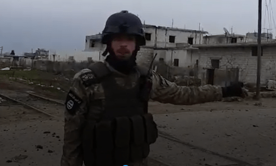 Jüngst hat sich ein ordinärer türkisch gestützter „moderater Rebell“ dabei filmen lassen, wie er mit einem ISIS-Patch an seinem Oberarm illusorische Lageberichte von sich gibt. Laut der Erdogan-Regierung bekämpft sie den Islamischen Staat und erkennt die Hayat Tahrir al-Sham (HTS, Al-Nusra, Al-Qaida) als Terroristen-Organisation an.