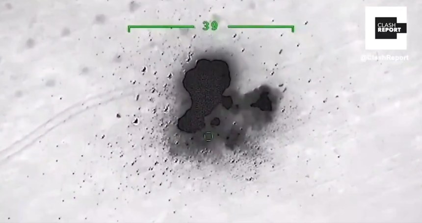 Wohingegen das fulminant amateurhaft zusammengeschusterte Video von Clash-Report, eine Szenerie wiedergibt, die einem Nuklearschlag gleicht. Sprich zig Tonnen Stahl und Metal, sind auf magische Weise von der Bildfläche verschwunden, obwohl laut Angaben lediglich ein UAV am Werk war.