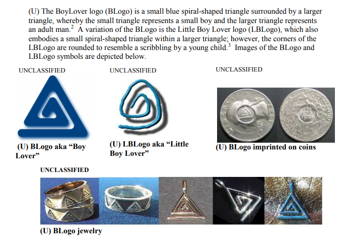 Pädophile die sich dem maskulinen Geschlecht zugeneigt fühlen, verwenden laut dem FBI folgendes Symbol: