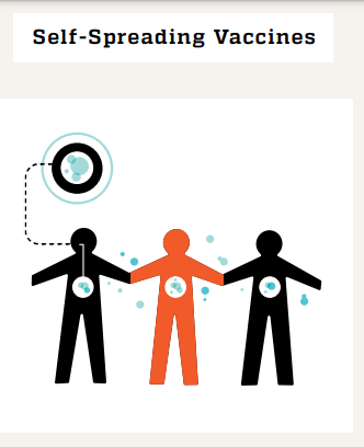 “ Selbstständig ausbreitende Impfstoffe sind gentechnisch verändert , um sich wie Infektionskrankheiten durch Populationen zu bewegen. Doch anstatt Krankheiten zu verursachen, verleihen sie Schutz. Die Vision ist, dass eine geringe Anzahl von Individuen in einer Zielpopulation geimpft werden könnte und der Impfstoff-Erreger, so wie ein pathogenes Virus in der Population zirkulieren würde. Woraus eine schnelle großflächige Immunität resultiert.