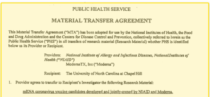 In diesem Zusammenhang sind jüngst neue Erkenntnisse zu Tage gefördert worden, welche die offizielle Corona-Timeline höchst fraglich erscheinen lassen. Dr. Ralph Baric, US-Virologe an der Universität von North Carolina und seit Tag eins federführender Teil der nach Wuhan ausgelagerten Coronavirus Gain of Function Mission, hat bereits am 12.Dez 2019 von dem Pharmaunternehmen Moderna und dem NIAID gemeinsam entwickelte mRNA Corona-Impfstoffkandidaten erhalten, wie aus einer veröffentlichten schriftlichen Vereinbarung hervorgeht. Als Begründung für die Übersendung wurden Forschungszwecke angegeben.