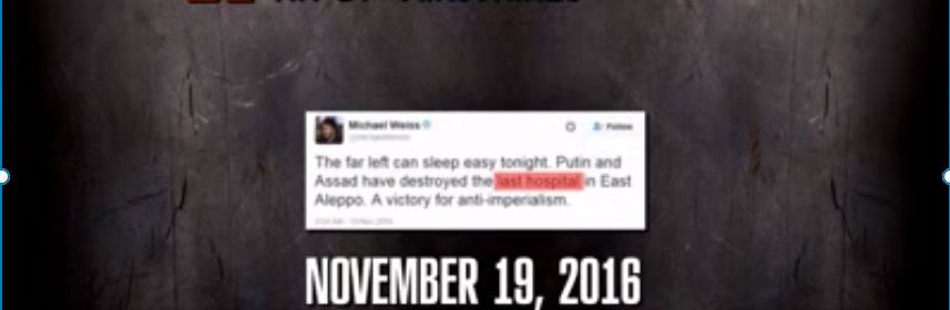 2016, während der heißen Phase des Syrien-Kriegs, hauten diverse Leitmedien und oppositionelle Aktivisten im Stakkato fortwährend die gleichlautende Ente raus. Wodurch das zunehmend ins Abseits driftende Narrativ unterstrichen werden sollte, dass Putin und Assad “ skrupellose Massenmörder“ seien, die nur ein einziges Ziel vor Augen hätten. Die radikale Dezimierung der syrischen Zivilbevölkerung.
