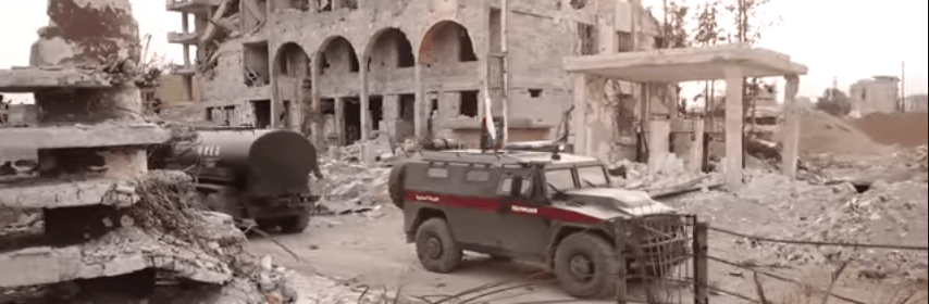 Russische Truppen sind in der jüngst von terroristischen Militanten gesäuberten Ortschaft Douma in Ost-Ghouta eingetroffen, um das Maß an Sicherheit in der Region zu erhöhen. In einem von rusvesna News publizierten Video wird die Ankunft russischer Einheiten dokumentiert, siehe unten. Verf.R.R.