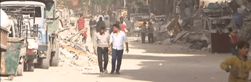 (Foto Screenshot vom Video) Der russische Nachrichtensender RT begab sich ins syrische Douma und führte Gespräche mit Einwohnern, die expressiv ihre Freude über die Befreiung schilderten, und überwiegend auf den Fakt hinwiesen nicht mehr unter der Jaish al-Islam hungern zu müssen. Verf.R.R.